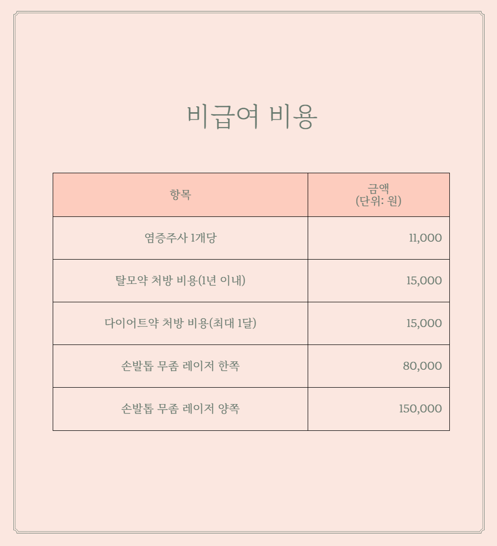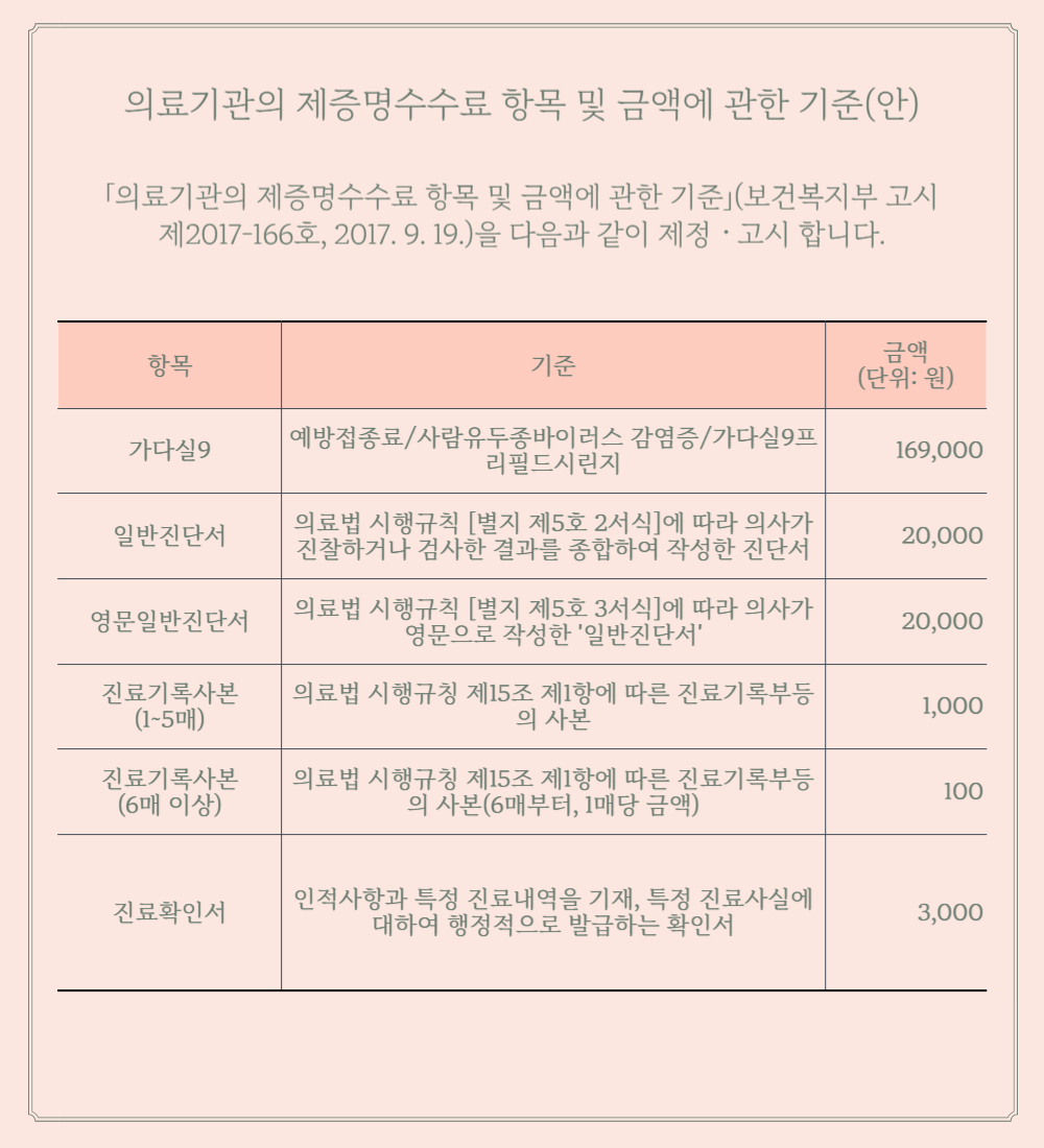 의료기관 제증명 수수료 항목 및 금액, 비급여 비용 고지